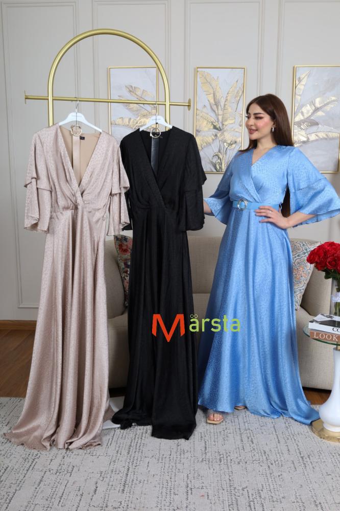 فستان تركي ساتان معرق طويل مع حزام أكمام ثلاثه ارباع طبقات قصة مميزه ومريحه في للبس ونعومة ملمس القماش يناسب جميع الأذواق والمناسبات يتميز بقصة الصدر للف المريحه في للبس وطله أنيقه مختلفه
