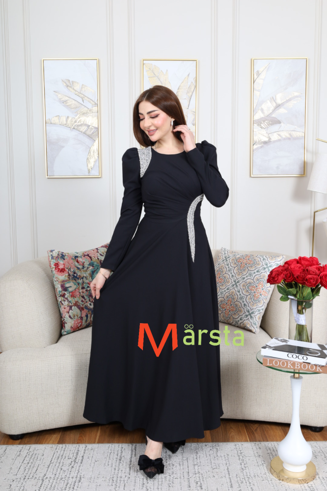 فستان تركي كريب كلوش باكسسوارات على الخصر وعلى ألكتف يتميز بنعومة الملمس والأناقة والنعومة التي تناسب جميع الأذواق والمناسبات المختلفة مثل الحفلات وغيرها الكثير للمرأة العصرية التي تهتم بالموضة والأناقة بشكل مميز وجذاب في مختلف المناسبات